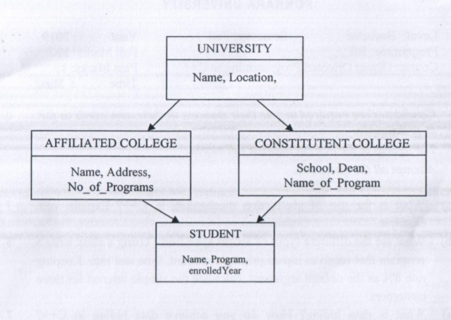 The following figure shows minimum information required for each class. Write a program by realizing the necessary member functions to read and display information of induvidual object. Every class should contain at least one constructor and should be inherited to other classes as well.