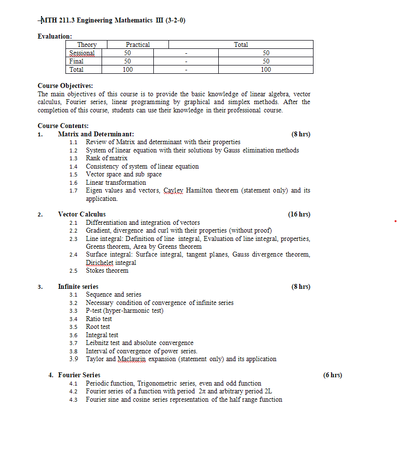 Syllabus of Engineering Mathematics III subject from Pokhara University (PU).